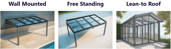 Glass roof slope fixed closure options include aluminum composite or glass.