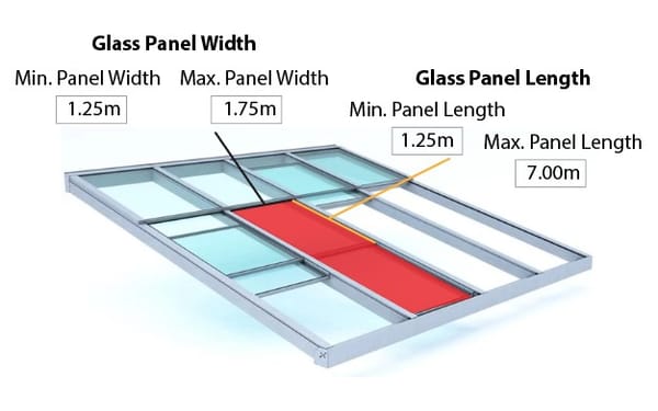 If the panels extend to 7 meters (22.97 feet), the glass can be divided into 4 or 5 sections. This provides a practical solution for covering larger areas.