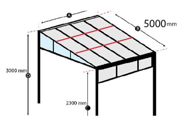 The beamed roof, which prevents rainwater (as well as wind and snow) between support beams and rails, is used for the perfect combination of two separate products. The beam roof is made of aluminum, coated with electrostatic paint, and always used in addition to the Waterblock System (FS1) and Anti-Air System (FS2).