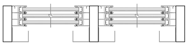 This diagram shows the minimum and maximum width and length dimensions for movable glass panels. The panels can be customized to suit various projects.