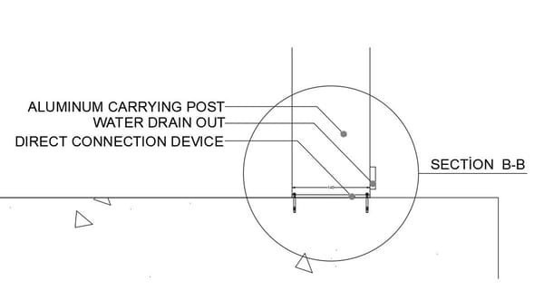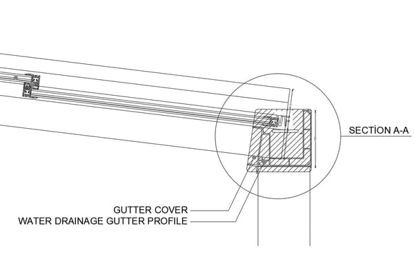 Rain gutters and downpipes are made of aluminum and mounted on the structure to direct and control rainwater. The integrated water discharge system is standard on all aluminum series of the Four Seasons product. The downpipe is mounted on the front pillar and hidden within the building, ensuring a clean design with no visible rainfalls. Note: If the product is used as a winter garden or similar with closed sides, rain gutters and downpipes are essential.