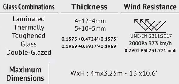 • Glass Options: 4+12+4mm – 5+10+5mm