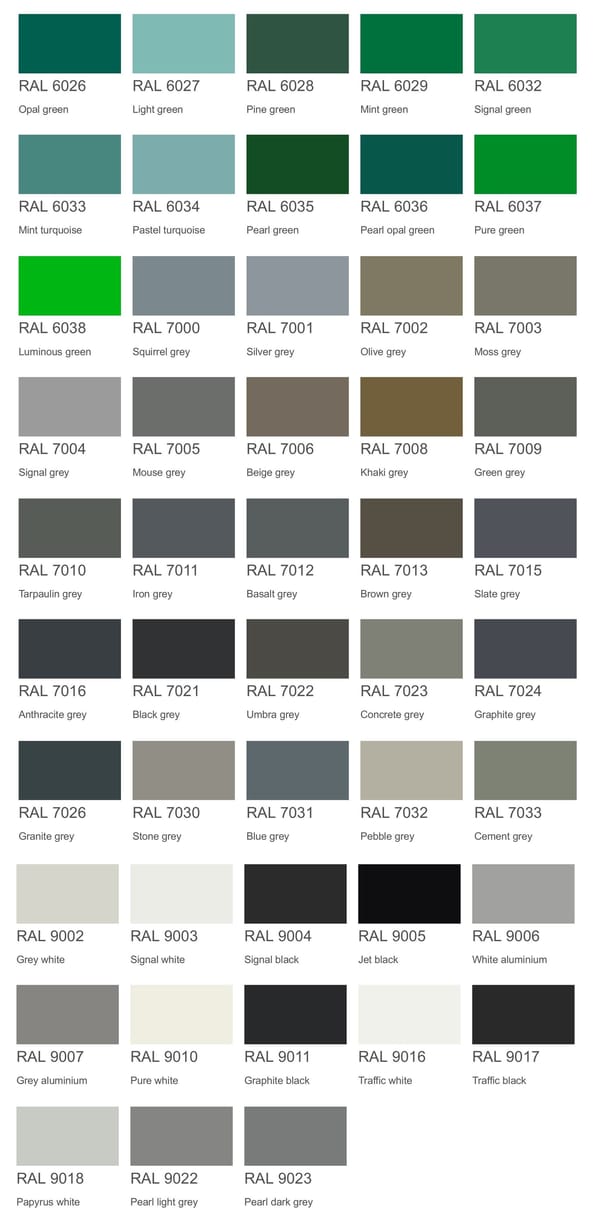 Please contact us for available RAL Colors & Indicate which option you prefer, Matt or Texture.