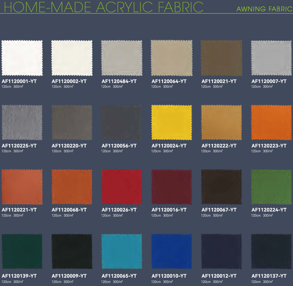 Warranty - 10 years on the structure, 5 years don't fade Acrylic Fabric, 2 years on electrical parts (motors, LED Lighting, etc)